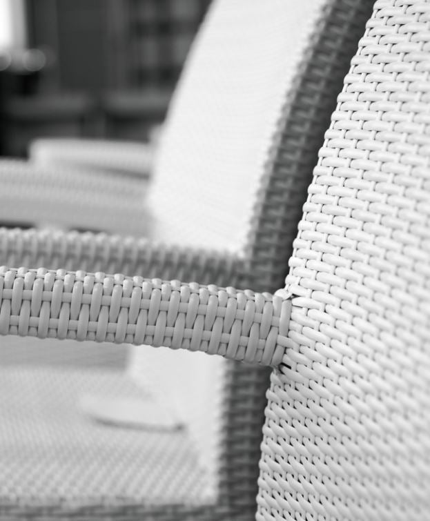 Wicker furnishings are made of durable and weatherproof extruded polyethylene resin weave.