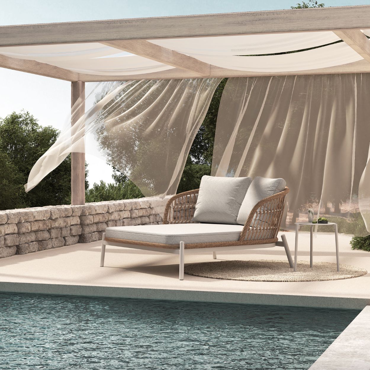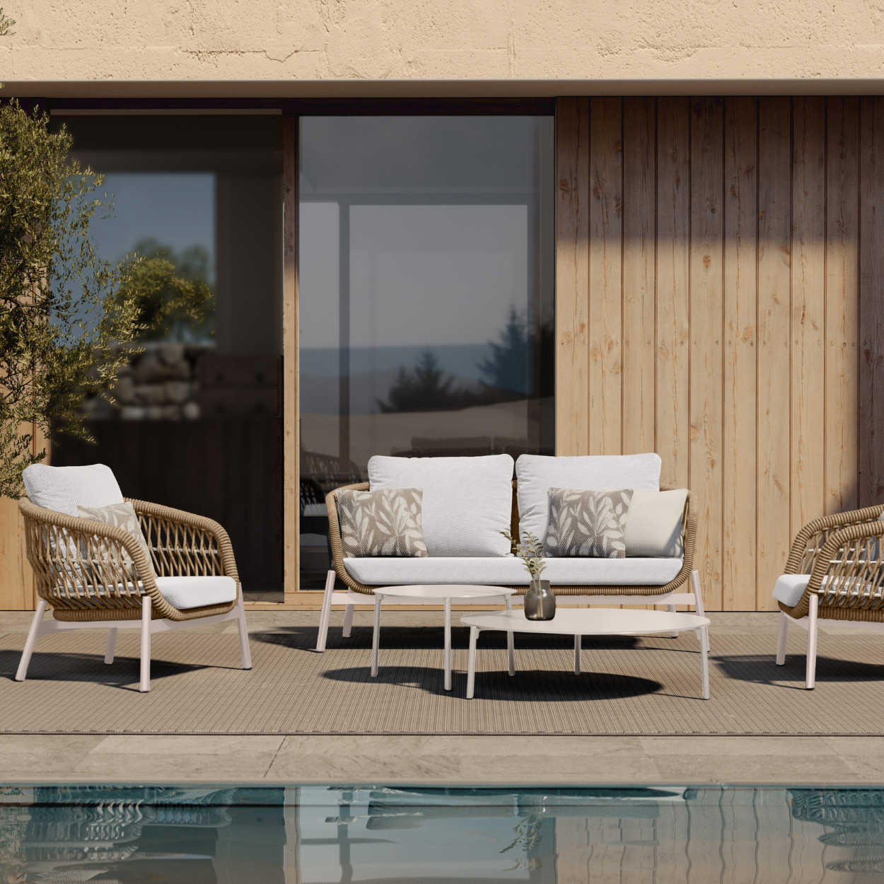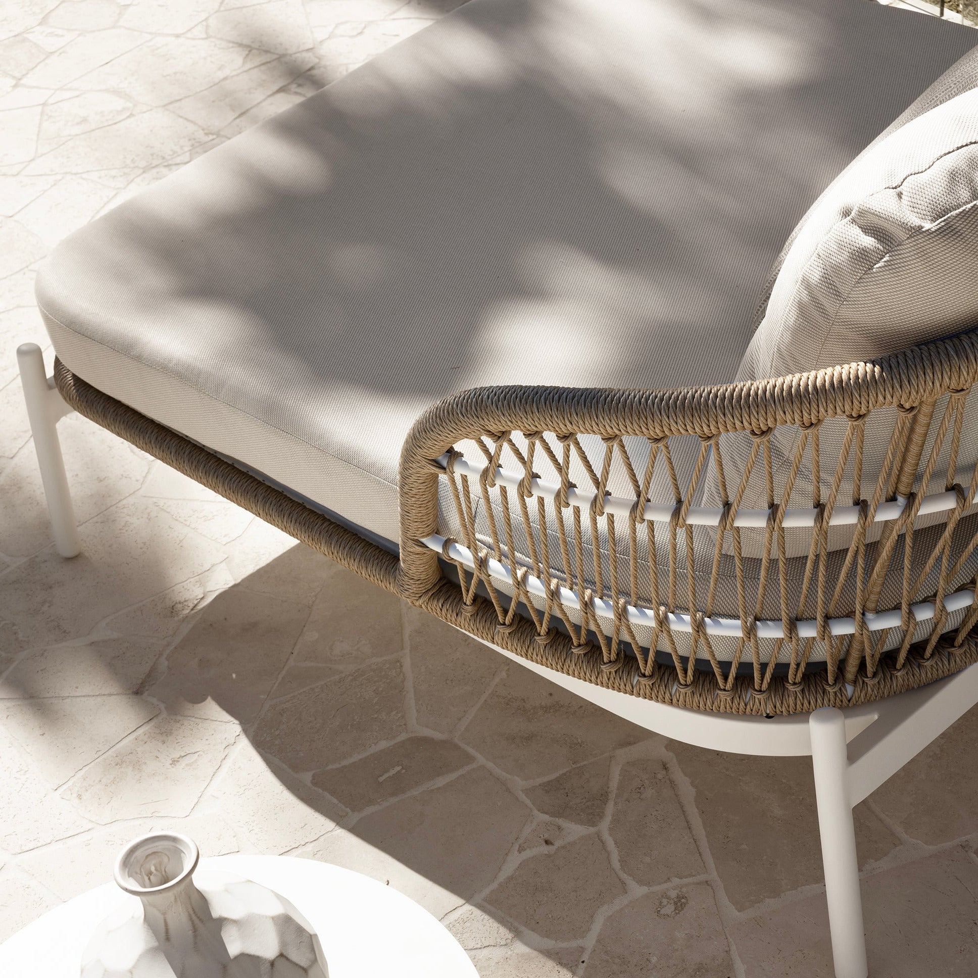 The Amalfi outdoor furniture collection is defined by its twisted natural finish rope and sweeping curves.