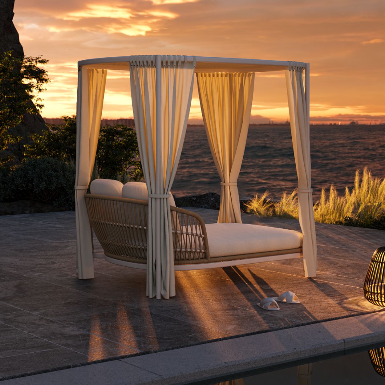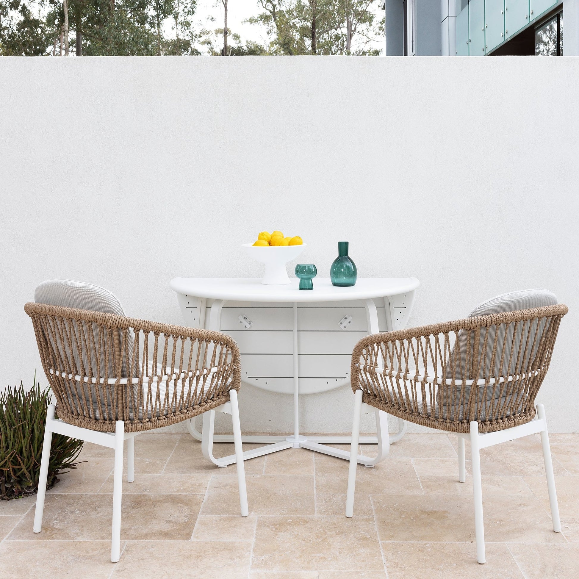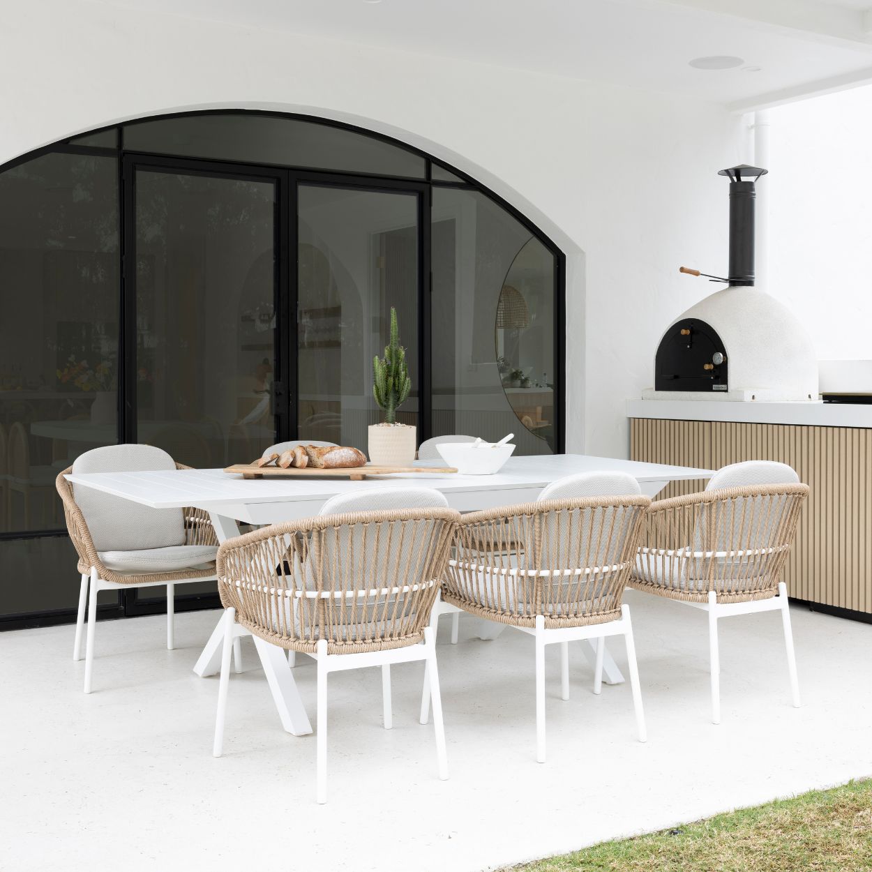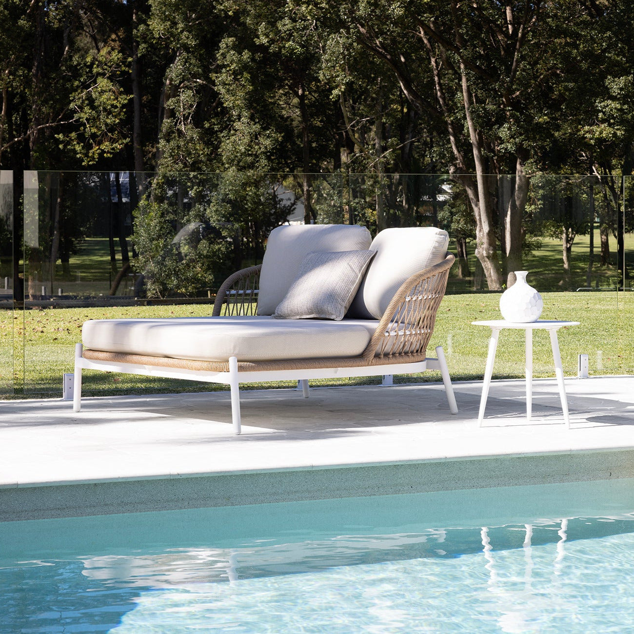 The Amalfi outdoor furniture collection is defined by its twisted natural finish rope and sweeping curves.