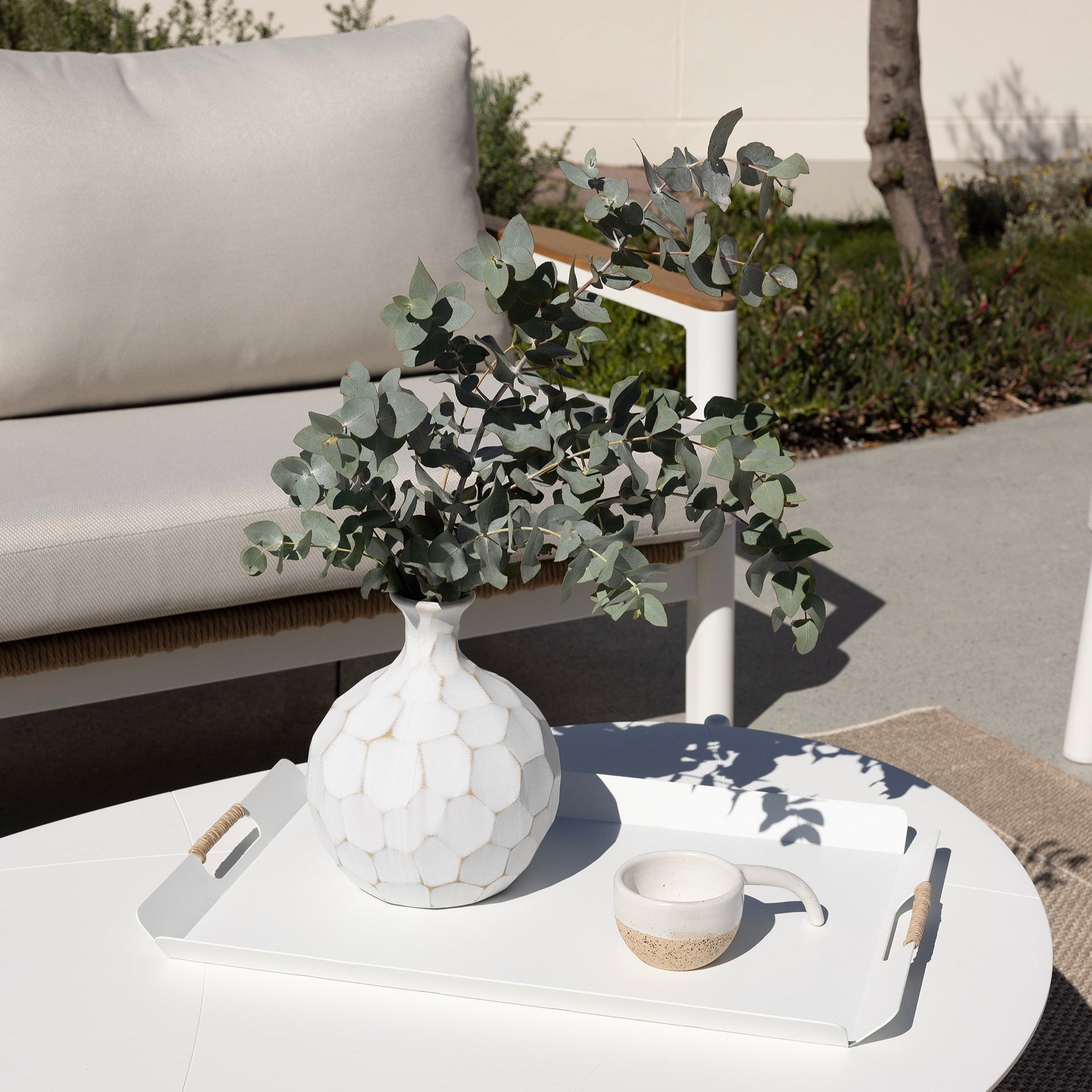 It's tactile woven back detail adds a sense of textural interest and depth.